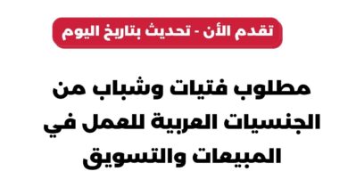 مطلوب فتيات وشباب من الجنسيات العربية للعمل في المبيعات والتسويق تحديث بتاريخ اليوم