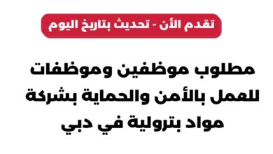 مطلوب موظفين وموظفات للعمل بالأمن والحماية بشركة مواد بترولية في دبي تحديث بتاريخ اليوم