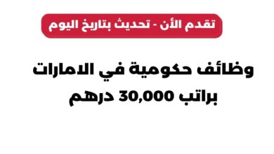 وظائف حكومية في الامارات براتب 30,000 درهم تحديث بتاريخ اليوم