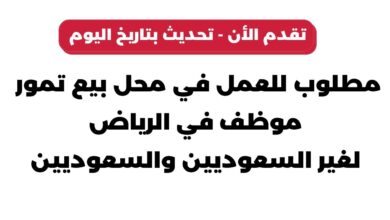 مطلوب للعمل في محل بيع تمور موظف في الرياض لغير السعوديين والسعوديين تحديث بتاريخ اليوم