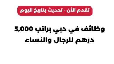 وظائف في دبي براتب 5,000 درهم للرجال والنساء للمواطنين الاماراتيين عن الوظائف الشاغرة بالشروط والتفاصيل الواردة في الاعلان التالي – وظائف…